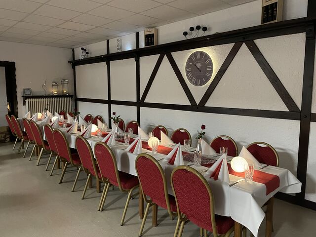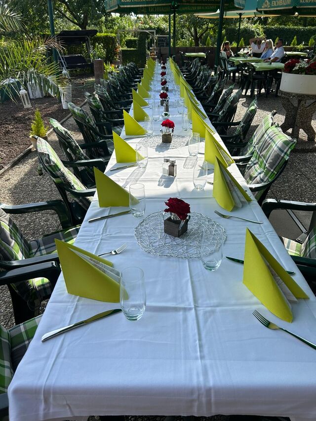 Restaurant bis zu 60 Personen ,Biergarten bis zu 100 Personen. Holzhütte bis zu 20 Personen.